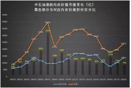 假如现在不是油价低点,以目前国际上普遍40美元/一桶的亏本生产价来看。那对应内在价值的折价就是88%。