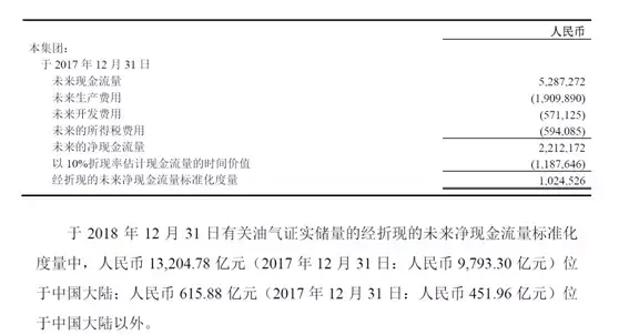 所幸的是,这个数据我们不用找,中石油每年的年报都有公布。2018年报的内在价值如下图所示。