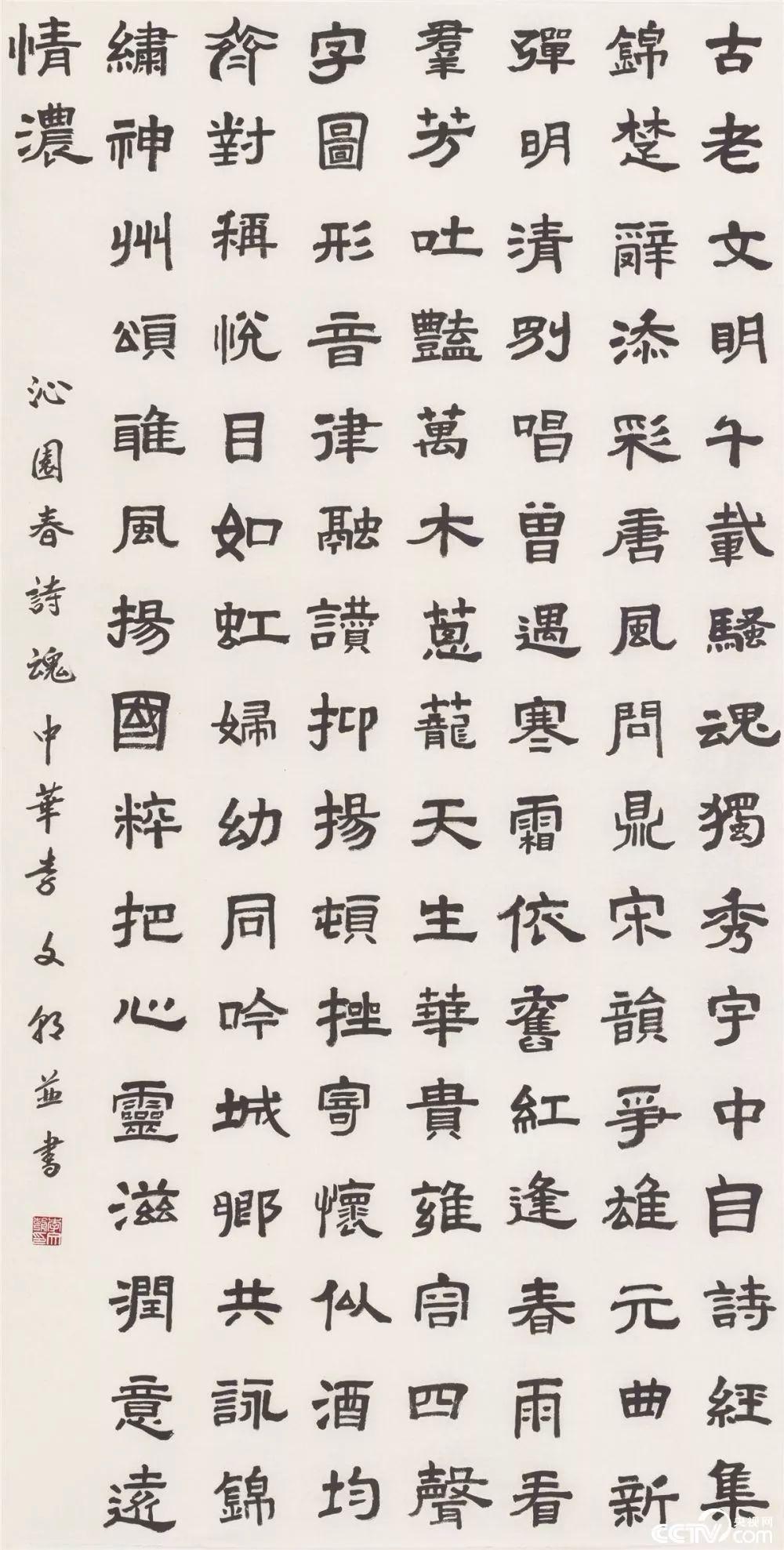 古老文明,千载骚魂,独秀宇中。自诗经集典,楚辞添彩,唐风问鼎,宋韵争雄。元曲新弹,明清别唱,曾遇寒霜依旧红。逢春雨,看群芳吐艳,万木葱茏。 天生华贵雍容。四声字,图形音律融。赞抑扬顿挫,寄怀似酒,均齐对称,悅目如虹。妇幼同吟,城乡共咏,锦绣神州颂雅风。扬国粹,把心灵滋润,意远情浓。