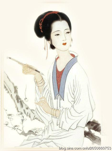 髻子伤春慵更梳,晚风庭院落梅初,淡云来往月疏疏,