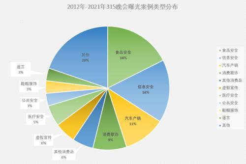 对过去十年的案例进行简单分类,食品安全依旧是占比最高的问题,数量高达16起;其次是信息安全和汽车产销问题,分别有15起和10起。紧随其后的是消费欺诈、其他消费品质量问题、虚假宣传和医疗安全问题。